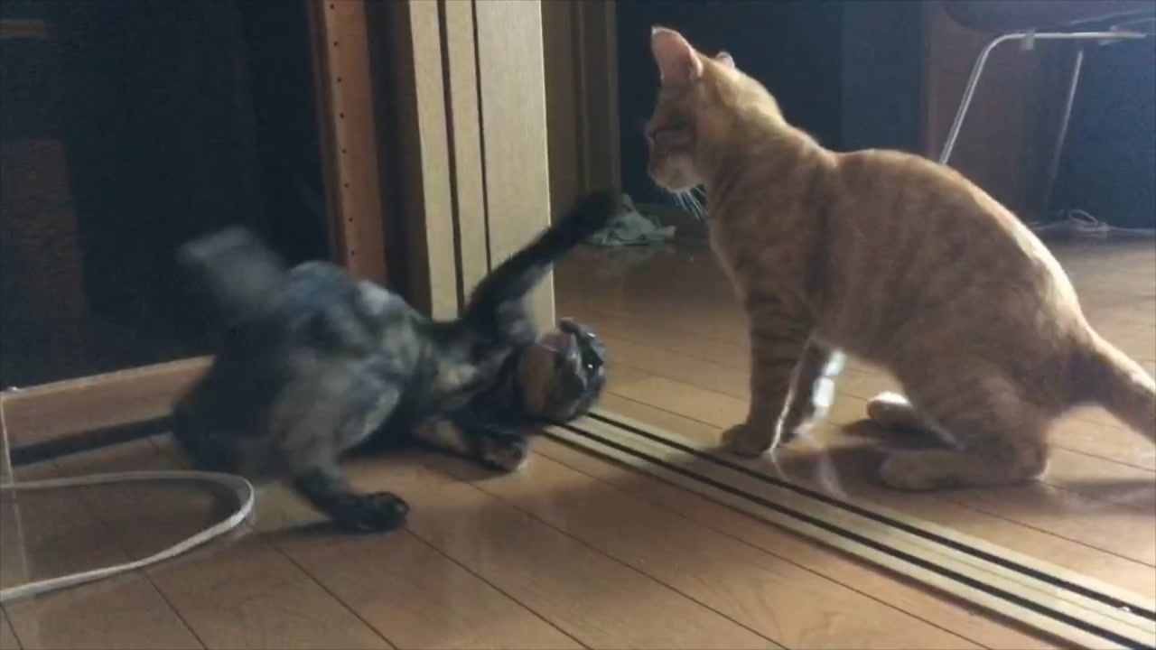 子猫が母猫にダイブ 高速キック 無邪気な子猫と母猫のじゃれ合いが愛にあふれている ねとらぼ